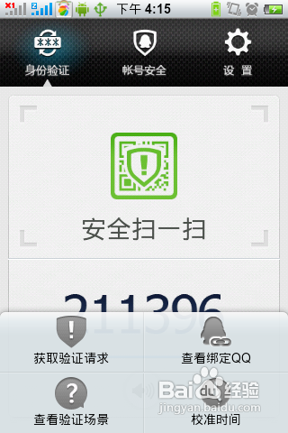 打开本身的安卓版本的QQ平安中间软件后,我们按下手机的“本家儿菜单”,然后弹出“获取验证请求”的功能选项。我们选择这个选项。