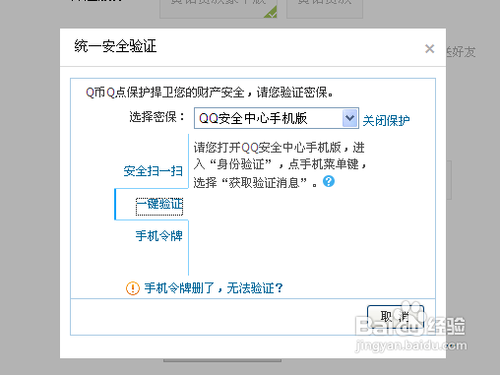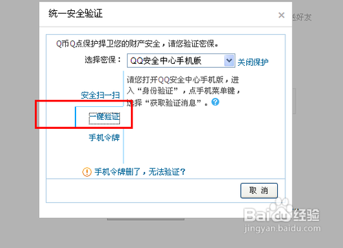 然后在弹出的页面中,我们选择“一键验证”选项,接下来,我们打开本身手机的QQ平安中间安卓版软件。