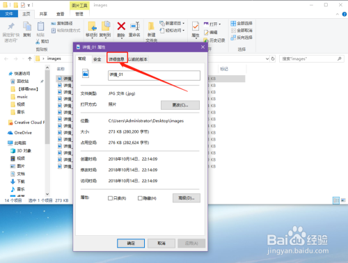 打开图片的属性窗口后, 选择【具体信息】tab标签栏