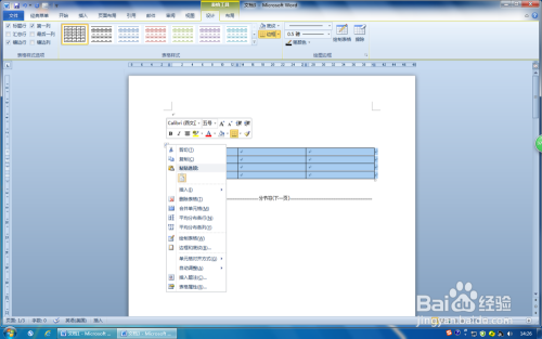 第三步:选中建造的小表格,右击,在弹出的快捷菜单中选择“表格属性”。