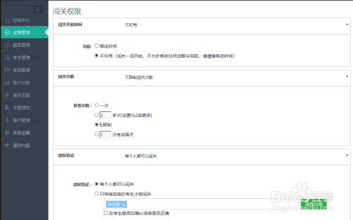 (1)权限设置:用户可设置闯关的开放时候、闯关的次数,授权权限(每个人都可闯关或指定组可闯关)。