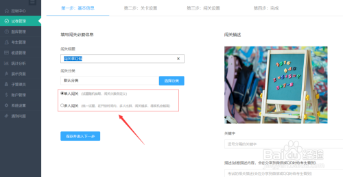设置闯关题目,选择闯关模式,添加封面图和描述等。