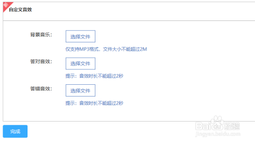 可自界说答题时的布景音效、答对时的音效、答错时的音效。