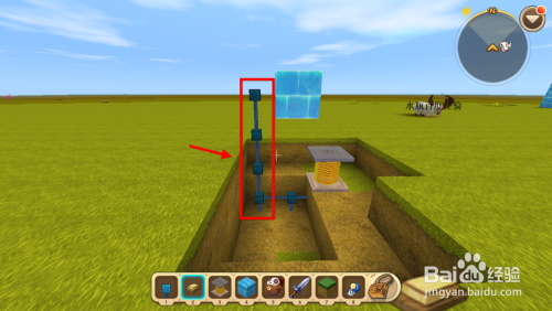 然后在电线结尾,金弹簧的正上方放置一个方块。