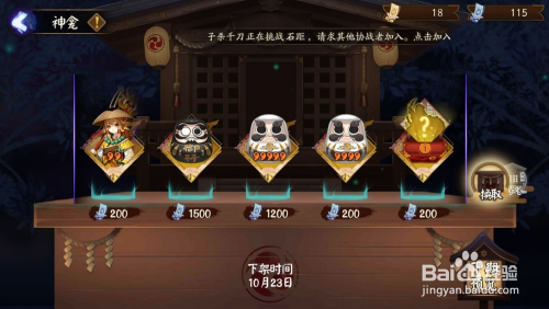 6、神龛(shen kan)兑换 当你有了足够多的式神返魂所得御札足够多的时辰,就可以用1500御札来换取黑达摩了,每一期可以兑换一次,御札的获取也只能是式神反魂或者做不按时的委派使命