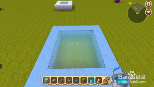 用肆意方块围当作水池,然后往水池里面倒水。