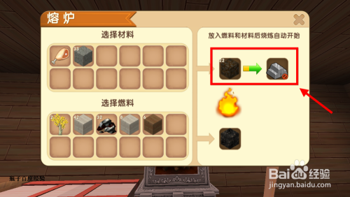 将收集来的精铁矿放进熔炼炉,然后选择燃料,每一块精铁熔炼后可获得一个精铁锭。