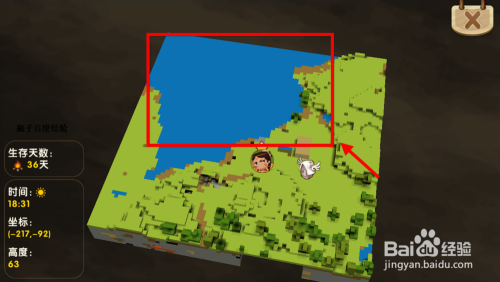 首先找到水源,按M键可查看地形分布。