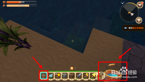 收集一些木材,然后点击物品栏摆布侧的“背包”选项,将木材分化当作木板。