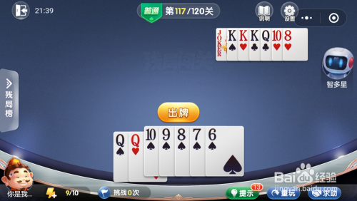 第117关先打出6-10顺子,接着打出一对Q就过关了。