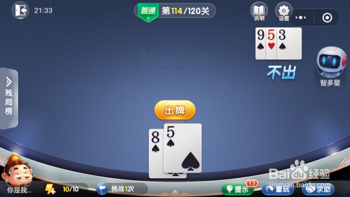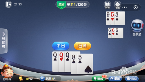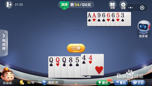 第115关先打出三张A带一对7,最壮大脑打出王炸。
