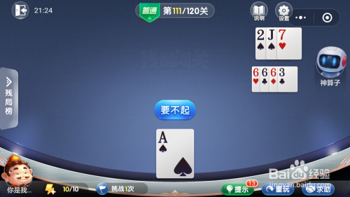 妙算子打出三张6带一张3,接着打出一张2一张7,然后我打出一张A就过关了。