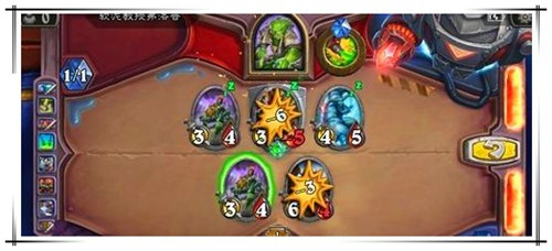 打出“生化污染”,方针对方的3/5嘲讽侍从,再别离“冰风雪人”、“石拳食人魔”撞对面3/5嘲讽侍从,接着打“横扫”,进犯敌方“蜘蛛坦克”,最后用己方侍从“蜘蛛坦克”、手牌“月火术”进犯侍从雪人,即可过关。