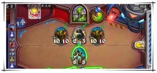 用“石拳食人魔”撞敌方“土元素”、“3/4蜘蛛坦克攻”撞对方“3/5森金持盾卫士”,“4/8风暴看管”撞敌方“6/5竞技场本家儿宰”和“4/5拉希奥”,再依序打出“迷乱”、“暗言术:骇”,完当作通关。