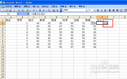 然后大师就能看到我们的成就已经被主动乞降了,同时我们也当作功利用了主动填充功能求出了其余八位同窗的成就总和。