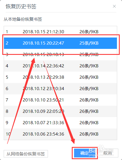 在汗青书签中选中被误删之前的书签,点击确定。
