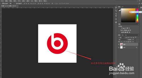 将两条参考线在拉回标尺,然后在PS画布的空白位置单击鼠标,至此,我们就在PS中当作功的将beats魔声耳机的图标给绘制出来了。