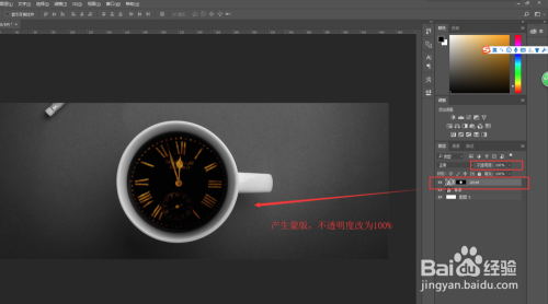 如许就为时钟素材图层添加了一个图层蒙版,然后将该图层的不透明度在改回100%。如许,我们就完当作了一个简单PS合当作案例,做出了一个时钟咖啡的结果。