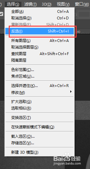 在选择菜单栏中执行反选操作,鼠标单击该号令执行应用反选号令,将时钟素材图上的正圆选区进行反选。
