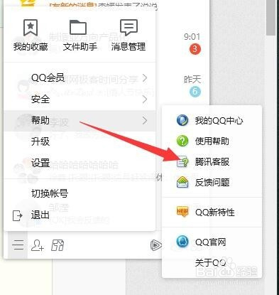 然后登录后找到下面的帮忙,然后找到腾旭客服,点击该列表项进入客服