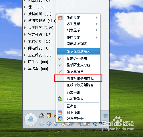 然后我们可以对着这个分组进行操作,就可以实现对这个分组里面的全数老友,在线对其隐身。