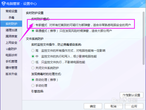 对于十分熟悉电脑平安的小伙伴来说,想要把电脑管家及时防护从通俗模式切换到专家模式,该怎么做呢?接下来,小编就和大师分享具体做法。