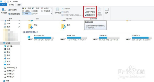 在打开的“查看对话框”中,找到“埋没的项目”,把它勾选上。如许,埋没的文件夹就显示出来了。