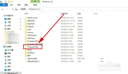 然后回到C盘,会发现C盘多了一个programdata,打开它