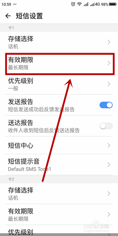 在短信设置页面上滑,找到新的“短信设置”后单击