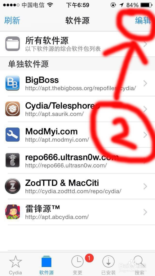鄙人方切换到软件源界面,点击右上角的“ 编纂”。