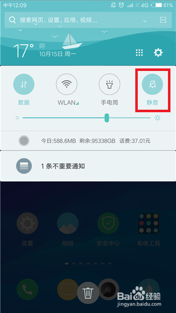 在使命栏中可以看到【静音】的功能,点击打开静音,如许我们在锁屏时就没有提醒音了。