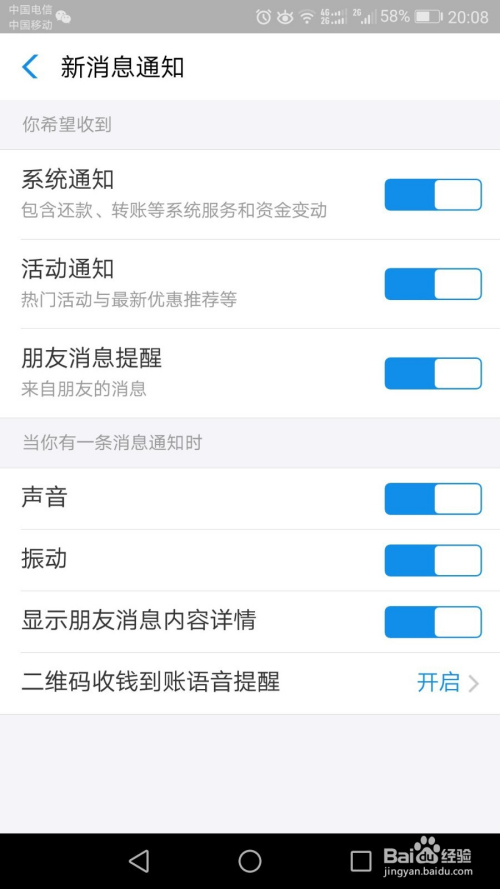 在最下方有个“二维码收钱到账语音提醒”,点击后面的“开启”