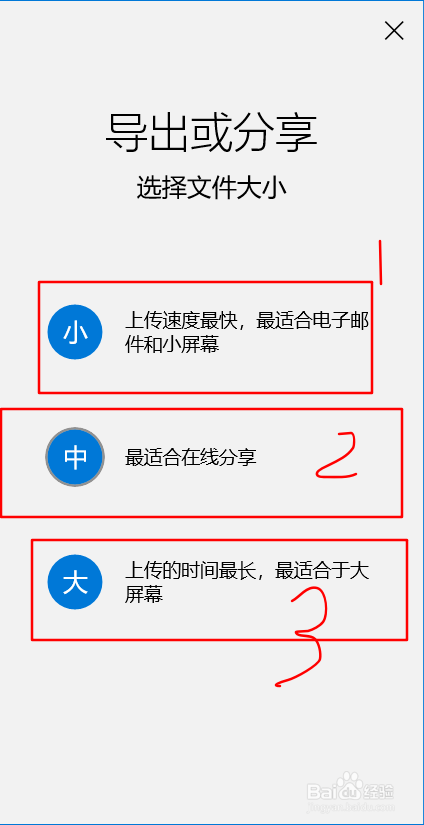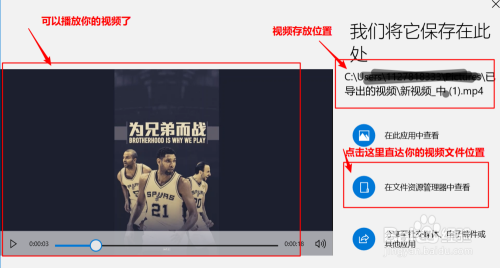 有年夜中小三种体例导出,看你需要。之后视频就导出来了,如下图。你可以进行视频浏览,也可以看到你建造的视频的位置在哪里。