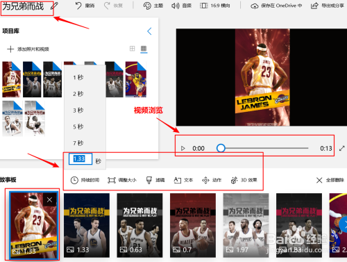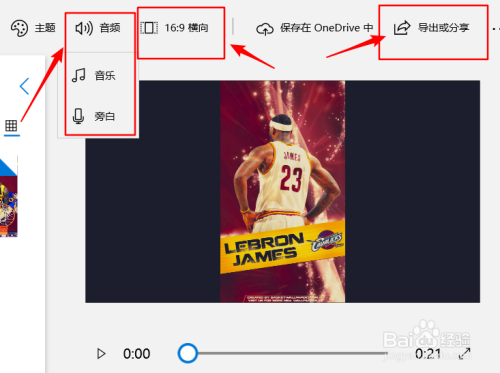 在“音频”还可觉得你的视频添加你喜好的音乐或者你的独白。