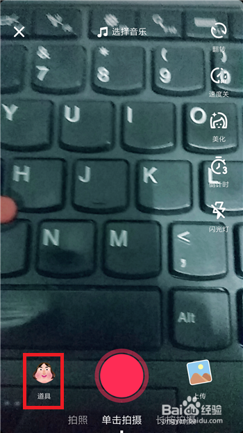 接下来仍然进入到视频的拍摄界面,这时辰需要点击左下角的【道具】选项。