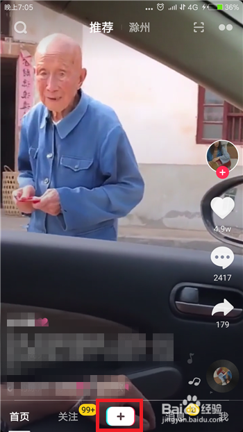 抖音中捏一下就变脸的视频并不是借助一个道具完当作的,而是经由过程视频的组合形式完当作的,首先打开抖音并点击【+】。