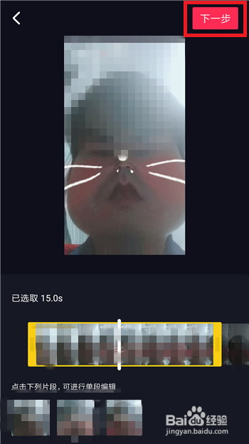 接下来会进入到视频的合当作界面,在这里若是视频跟尾的欠好可以进行剪切,完当作后即可达到捏一下变脸的结果,建切好后点击【下一步】。