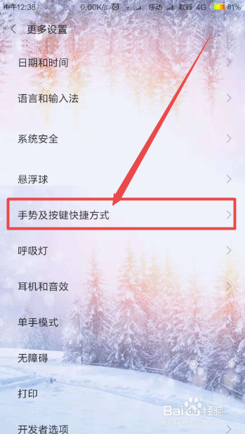 在打开的更多设置页面中找到 手势及按键快捷体例 选项并点击它。