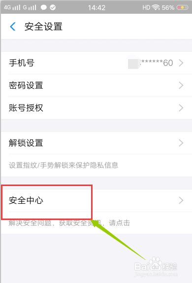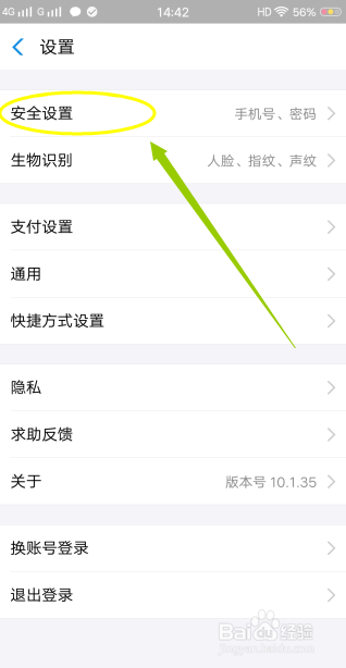 接着显示设置界面,点击此中最上方的平安设置选项。