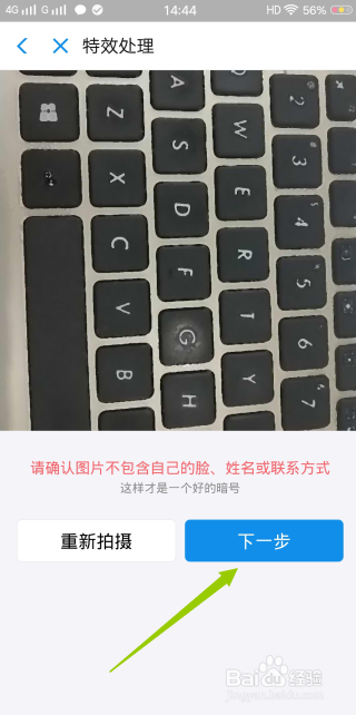 拍一张非被人照片和头像的图片,确认后点击下一步。