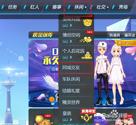 进游游戏后,在游戏首页的顶上,找到【休闲】。