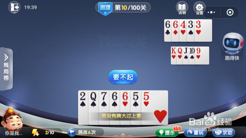 最壮大脑打出一张3,我打出一张J,最壮大脑打出一张小王,接着打出一张6,然后我打出一张2就过关了。