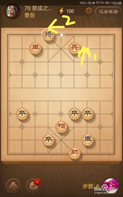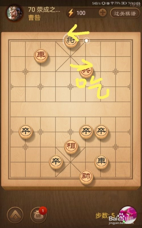 第五步,小兵右移吃士,对偏向左移动将,如图。