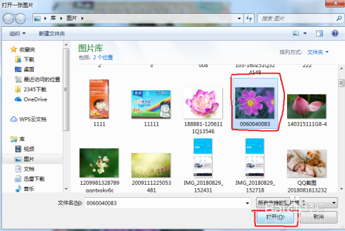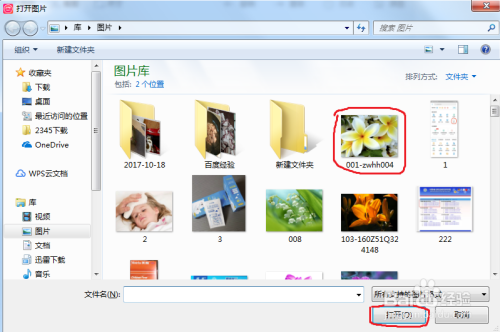 鼠标双击下边方框,弹出选择图片对话框,选择图片后点击“打开”按钮,即可添加下面方框的图片。