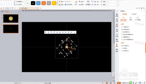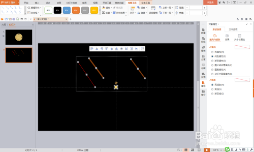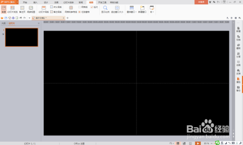 打开WPS演示,幻灯片去除文本框,设置为黑色布景。