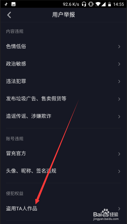 此时可以选择举报和拉黑该用户,那么我们可以选择直接点击举报项