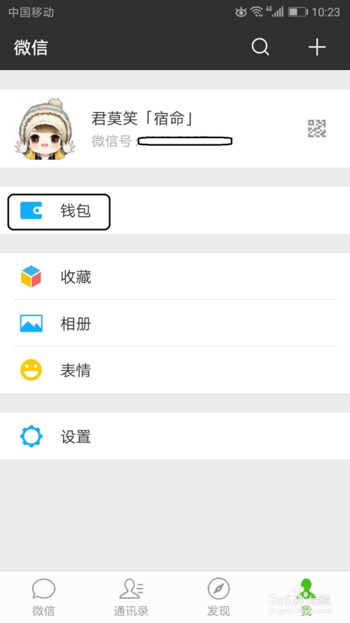 在我项界面中点击钱包号令。