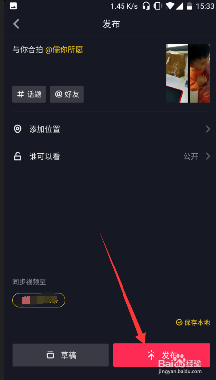 这里需要输入你想要合拍输入的话,随便输入一些,点击发布