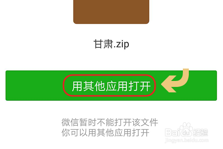 点击今后就会切换至“文件预览”窗口,该窗口中会有“用其他应用打开”的选项,如图二...