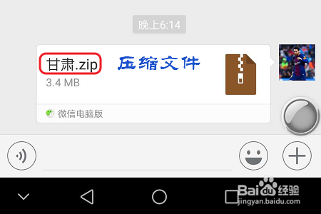 图一就是微信APP中收到的一个压缩文件,若是用的是华为手机,那么点击点击该文件;